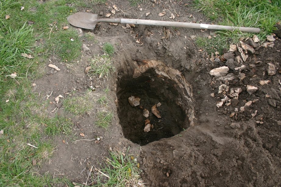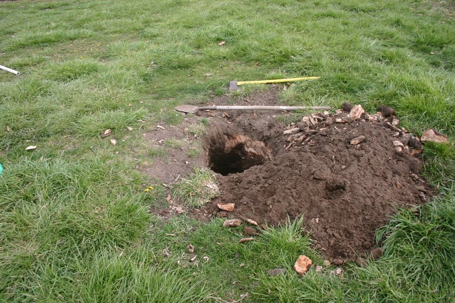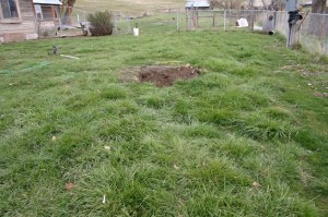 Upon closer inspection, I see that yes, yes that is hole in the yard. No, it’s not a big hole, but it is a deep hole.