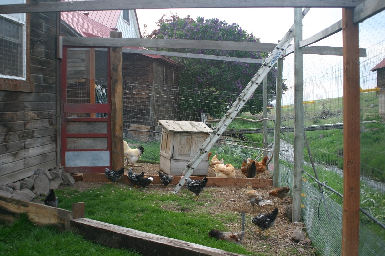 Here are the lucky survivors checking out their new abode (they don’t know it yet). Eleven babies (did I say that already? 11 out of 24) I had a Turken (chicken with no feathers on its neck, or naked neck chicken) but it got eaten. All my other odd random 79 cent chickens survived. I tried to feather sex the cheap chickens when I picked them up. We will know in another 3 months if I got it right or not. The black and white mottled chickens are silver laced wyandotte pullets (baby hens). The white crested chicken is a Polish. Three of the multiple color chickens are supposed to be Araucaunas (probably just easter egger chickens). The little tan chicken is a banty brahma and the Big chicken next to the banty is a surprise. I don’t what it is.