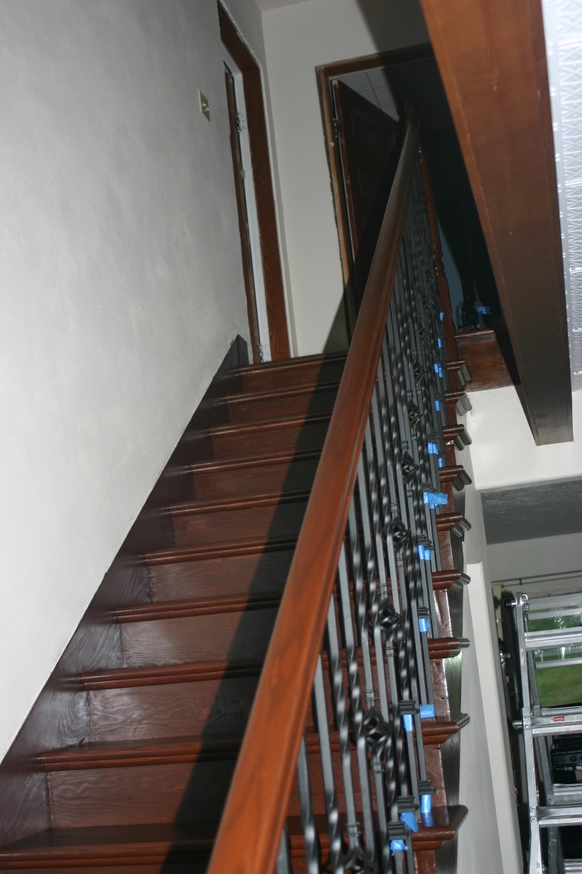Woo Hoo! I put the second coat of polyurethane on today. It took me five hours for each coat. I will be officially done with the stairs after I take the painters tape off and tighten the shoes back down. So here are the stairs in all their glory. Be glad you didn’t have to do the work.