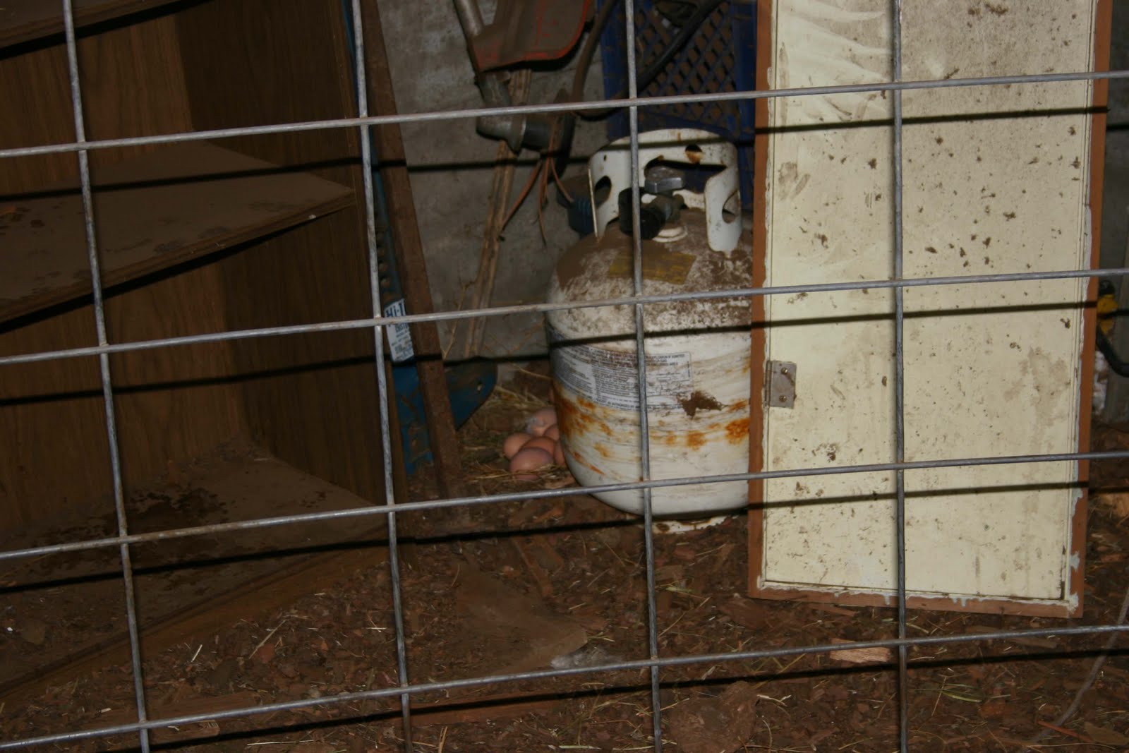 I have a stupid problem. It really shouldn’t be a big deal, but it is. It is not life threatening but is starting to annoy me to no end. The chickens are laying were they should NOT. The section of the wood shed that I had blocked off with a tarp had a 1.5 foot gap at the top of the tarp door and there was a back window opening to the outside. Sarah came in and told me there were a “butt load” of eggs under the tarp covering my old road bicycle. After lecturing the child about her language I went out to the wood shed. Twenty Six eggs I had to break against the stump!! Another 2 dozen!!! I think the chickens are doing it just so they can have a feeding frenzy when I break the eggs open for them. Again, this is a stupid problem. I just want to collect the eggs so I can sell them. At this rate I am going to have to go back and see how much money I have lost. The chickens are cheating me out of cash.