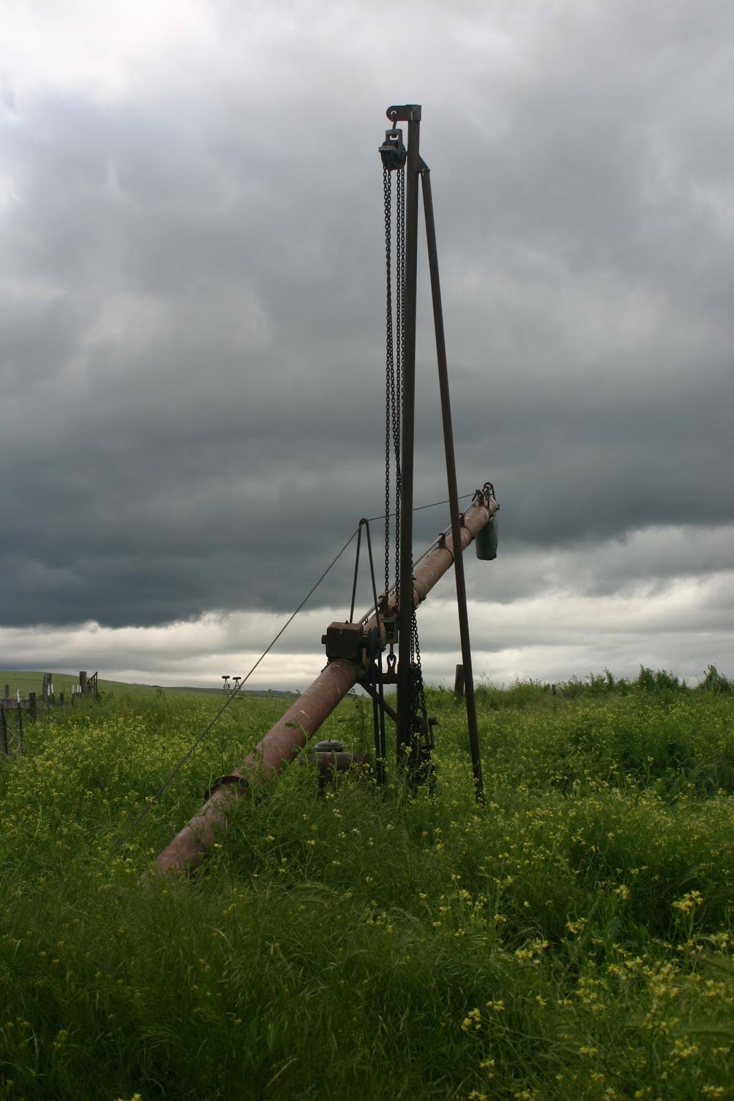 I learn as I go. I really learn from mistakes, but to do that, I have to first make the mistake. I was out fencing again today. I finished up all the minor details on one stretch today. I added the stabilizer twists and nailed down the loose ends. So that was good. On the bad note, my new stretch I am working on turns a corner about 130 degrees. I kinda figured I would not need to support the corner post on both sides. Saves me from digging a hole. Not so much. When you crank down with the come-along it is cause the post to bend over. I am now going to have to loosen the fence, back the pickup over there, hook onto the post and the pickup hitch, bend the post back up till it is square and add in the support post I didn’t do the first time. So from now on all corners get 3 posts regardless of the angle. The next two pictures are of my completed fence. Thank goodness it is done. Hopefully, I will not have to build any more rock jacks. Very painful to do and then once built, you have to actually fill them with large rocks.