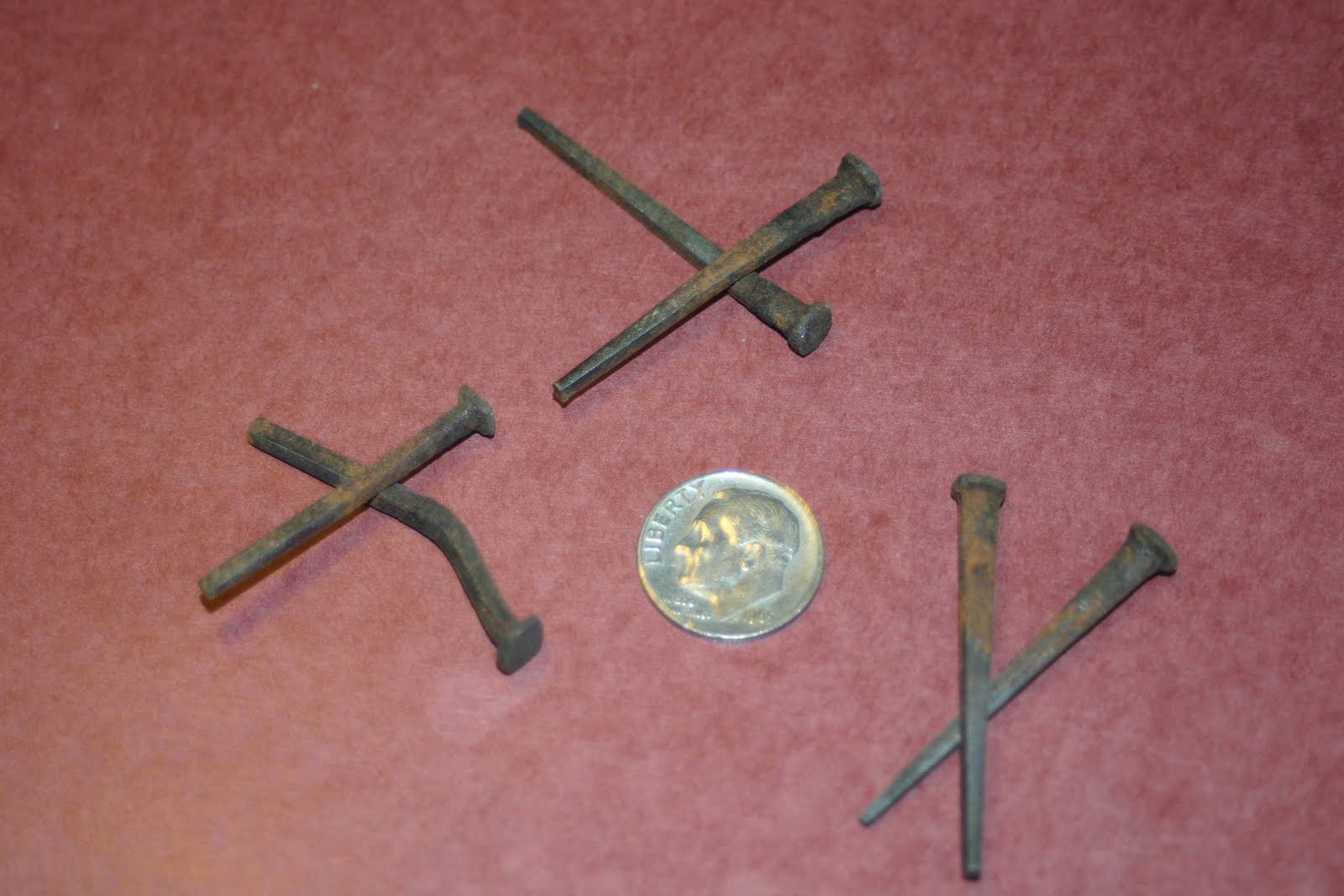 The nails are 1.5 inches long. They are going to look great in whatever I use them for. The gal that we bought them from said her husband used to take down old buildings in the midwest and reclaimed the nails whenever he demolished a building.