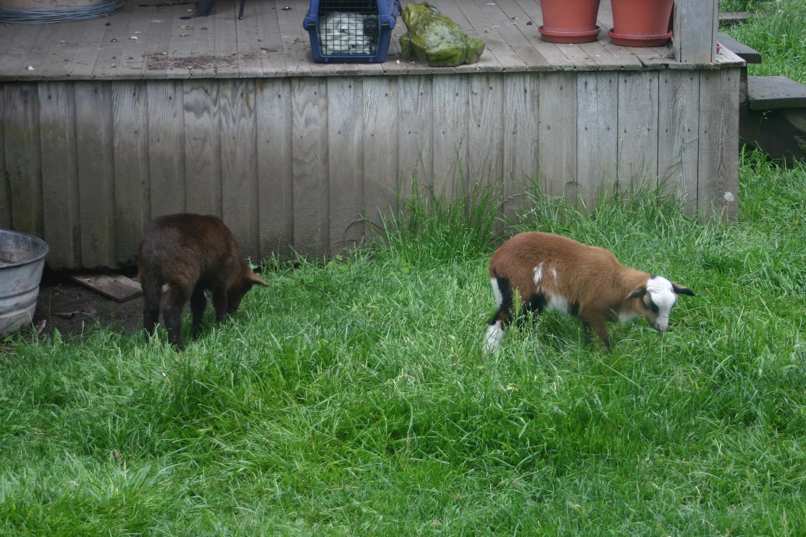 The sheep are doing great. I cannot for the life of me figure out why everyone isn’t in love with baby sheep? They are the cutest little stinkers. We keep catching them and petting on them. Here is a picture of Lucky, the multicolor ram.