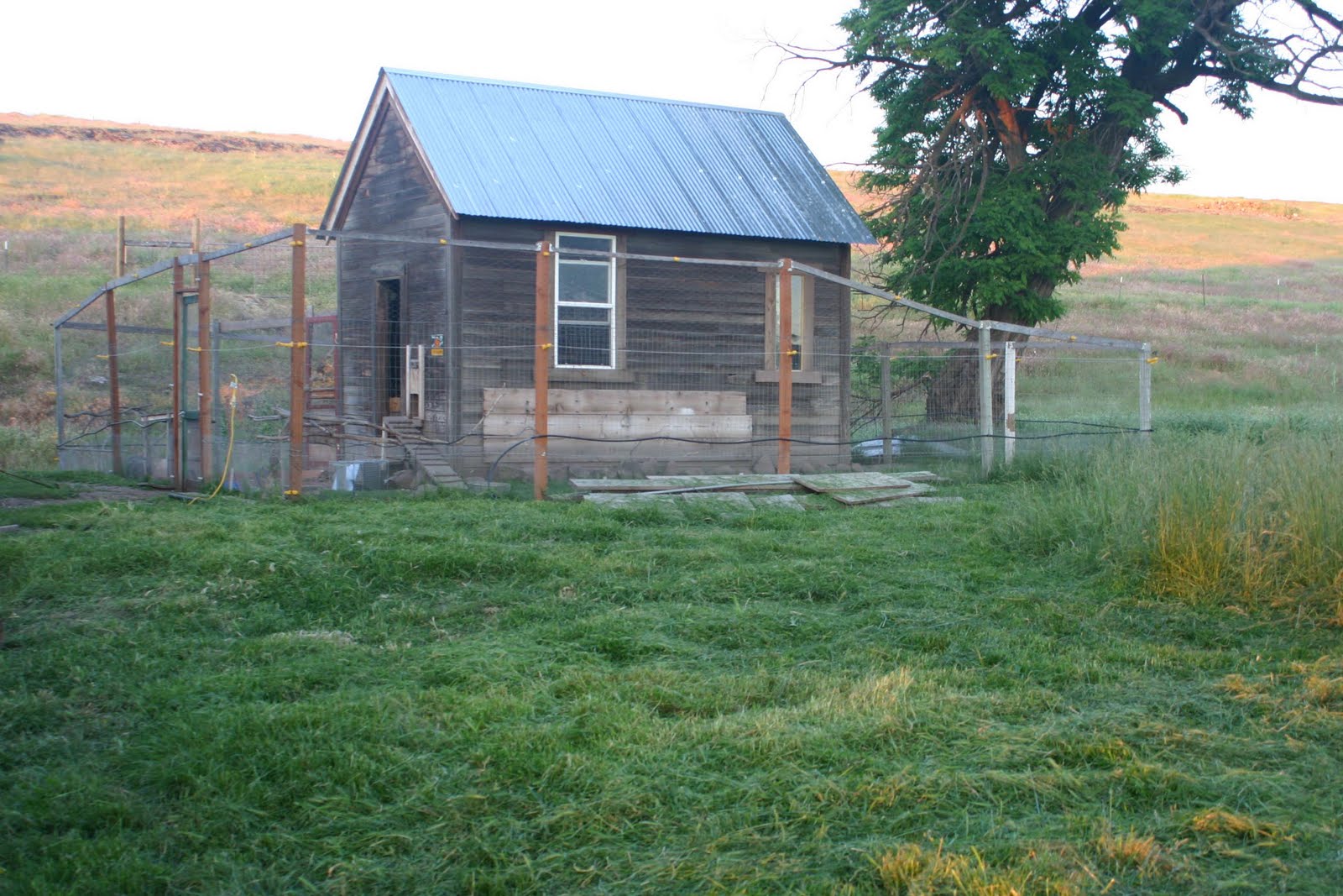 If you look on the right side of the picture, you can see how high the grass is. Today I cleared a 10 foot swath all around the coop and made all the tall grass you can see on this picture go away. The weed eater finally gave out on me. The things make me crazy. I have already broken two in the last 3 weeks. I had to shut it off today to refill the gas and could not get it restarted!! So instead I went out and chopped down thistles (broke the blade chopper head yesterday for the weed eater) by hand until dinner.