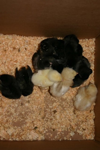 So I found some new chickens!! I was cruising Craig’s list and found a listing for Auracuana chickens, they lay BLUE eggs. So we went to the Tricities today and picked them up at a gas station in an exchange. She gave us a couple of other chickens called Showgirls (Turkens with fluffy feathers). So the babies are in the coop now. I should not loose any this time as they will grow up in the old area and as they get bigger they can go into the 360 degree fenced in outside area. I am not letting these ones out until they are older than four months. No cat food this time by letting them out early. So the chickens were $60, medicated chick food 50# was $14 and new pellet bedding was $12.75. Now if I can just keep them alive for 6 months I will start to see some return from them. Now if I could just catch those predators…These are my babies.
