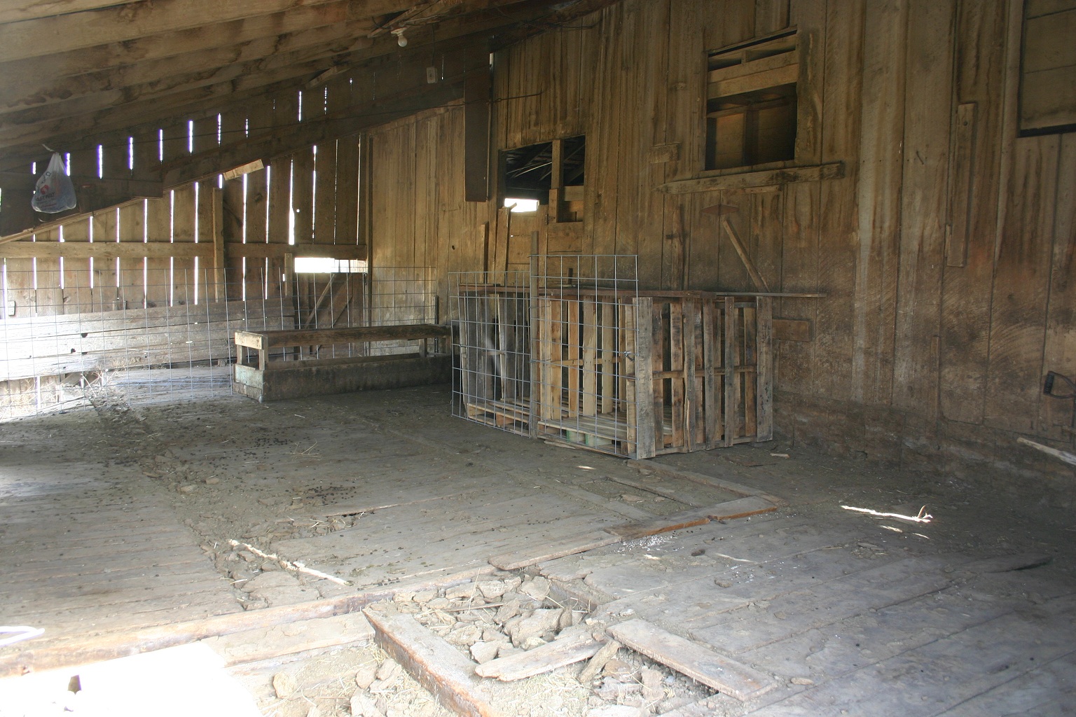 Here is the completed deal. I have a fence on the far end to keep them away from the damaged floor (remember, this section of the barn is on the demolish and reuse plan, I just haven’t had time to do it yet). I have a feeder and the pens are built. I just need to add some USB board to the pen floors and walls so it will stay warmer.