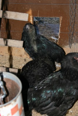 We decided that it was time to let the babies out with the adult chickens. They are not really babies any more, but the roosters are not crowing yet. I have a banty hen that is tiny, she might get eaten. She is a little Showgirl that was free.