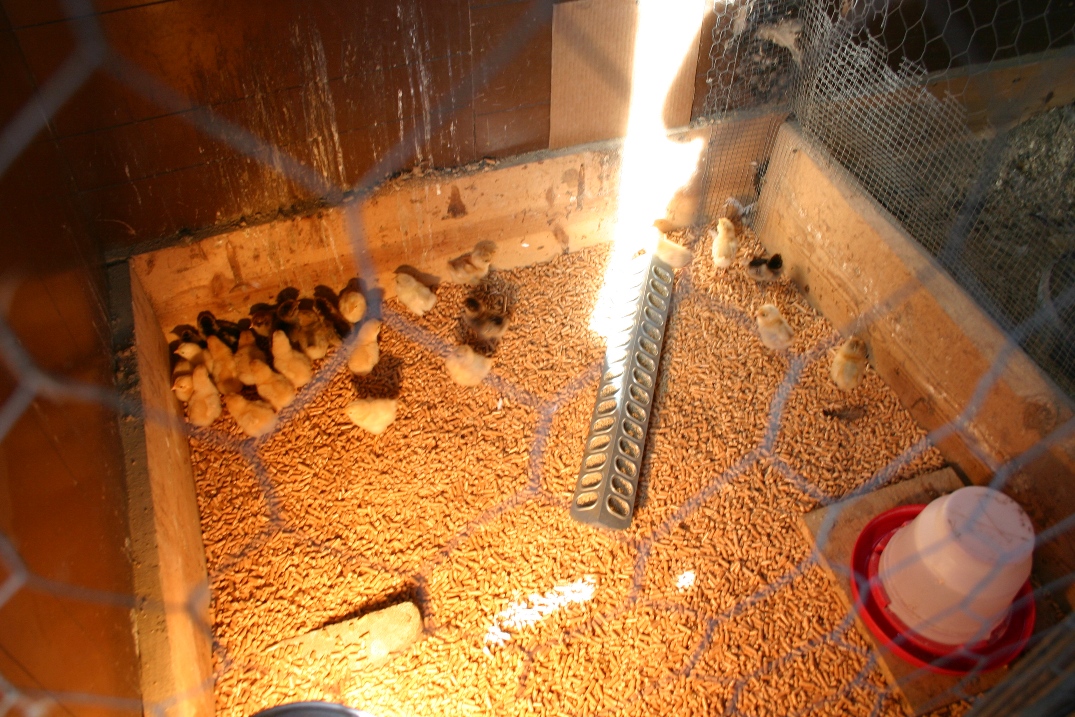 More baby chicks arrived today. I picked up another 25 babies (12 buff orpingtons and 13 Easter eggers (mutts)), so Sarah and I had to dig the baby area out, clean out everything, lay in new bedding and fire up the heat lamp so they would not get cold. Now if I could only catch whatever is killing my chickens.