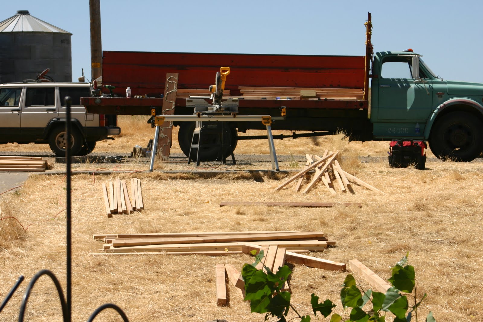 On Friday, I had my teenage paid help (non-daughter) come out to help me set up, cut and sort wood. We spent eight hours sorting wood off the truck, making lots of piles for different parts of the bridge, cutting boards to length and ripping other boards to measured widths. We even managed to put one whole beam together before it got dark. A very productive day. This set the tone for the next day on Saturday.