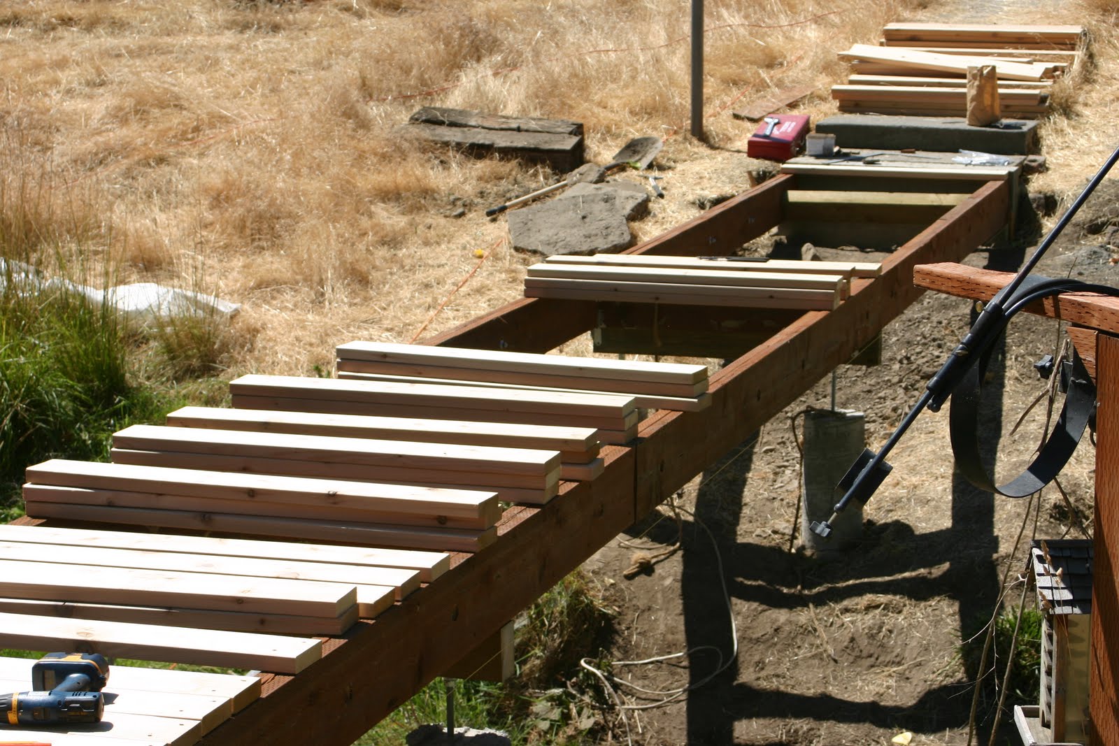 | Piles of pieces ready for installation on the bridge. |