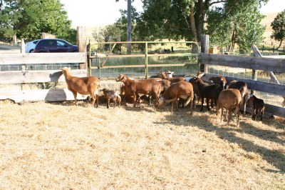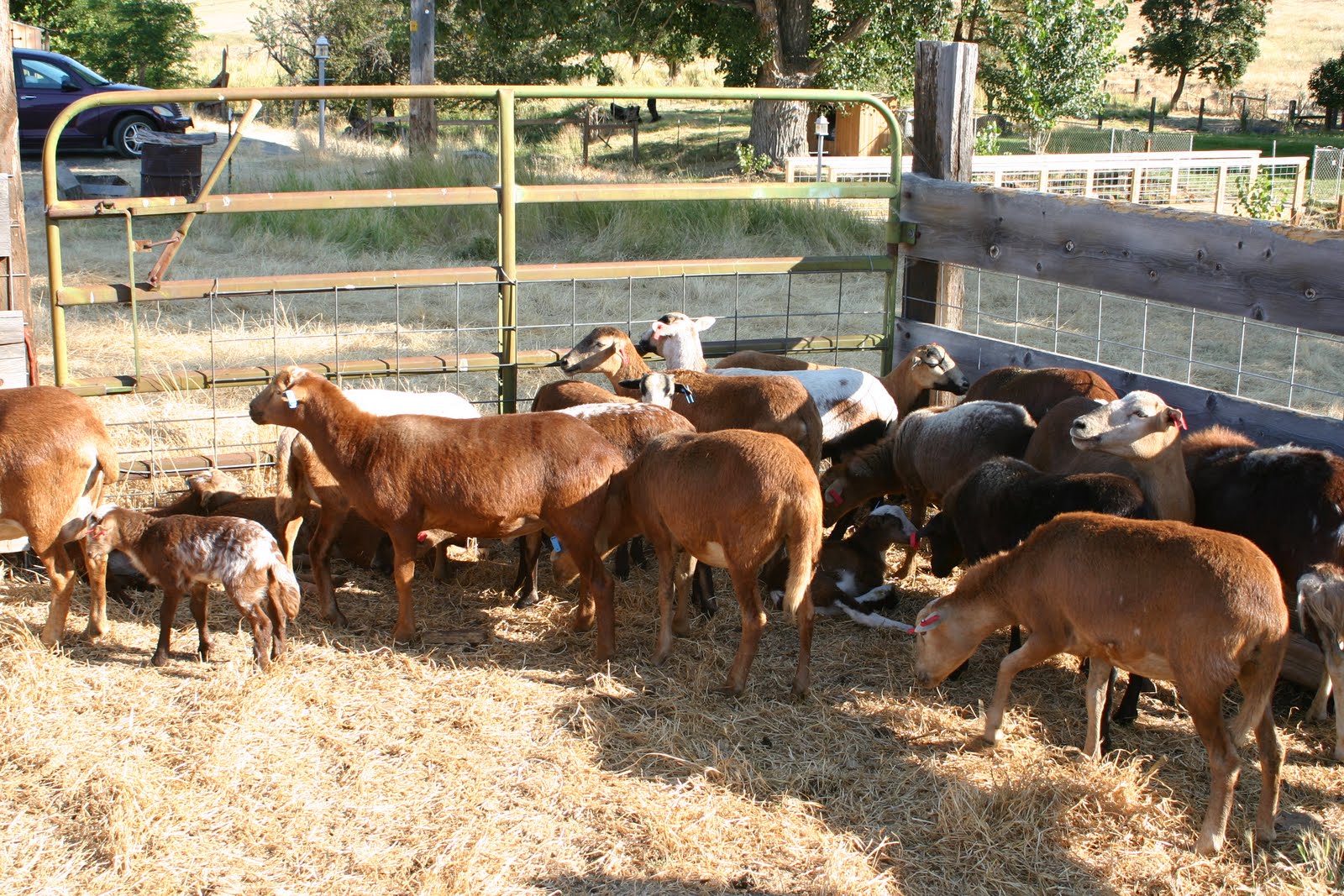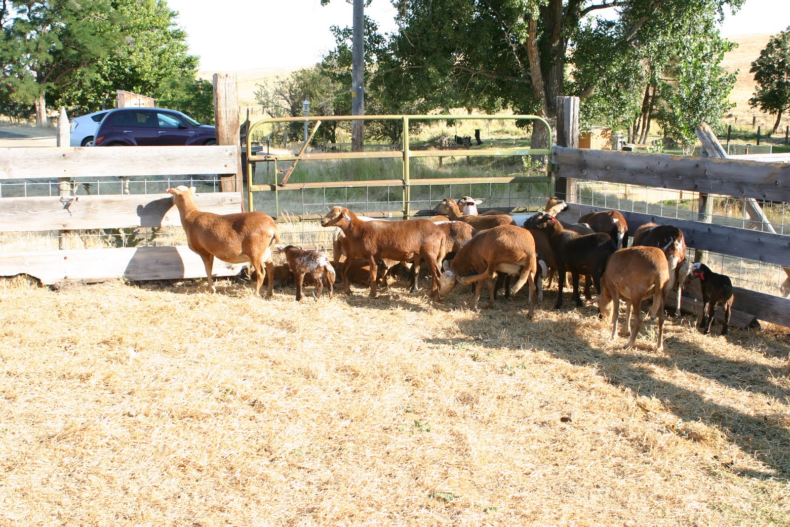 Well Annmarie got us up early and the two of us went out to wrangle the sheep this morning. We herded them into the corral and the fun began. Sarah was visiting with her cousins so she was missing out on all the action. We needed to tag them all, blue tags for boys and red tags for girls. All the tags had numbers so we could track the sheep’s production. Some of the boys needed to be banded and a few of them still needed to be wormed. Annmarie was catching the sheep and I was inflicting all the pain on the sheep. The trouble with this is I am not experienced. So I was learning as I went. We would herd the sheep into the sorting chute and then catch them to administer their punishments. The problem is the sheep are fast. I was trying to catch this little twenty pound sheep (grasshopper) with a pair of tag pliers in one hand. Annmarie kept hollering at me to drop the pliers and catch the lamb. The trouble is the sheep are like little jumping beans. The damn lamb kept jumping up to my shoulders trying to get by, Annmarie was hollering and I was laughing so hard the lamb got away. I ended up on the ground rolling around. It took us just over an hour to get every one through.