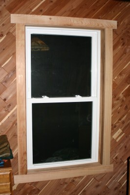 I did manage to get our master bedroom closet window trimmed out. I had to buy “clear” lumber (no knots) and they add almost 800% to the price of this wood. It is crazy. The cedar (rest of the closet is cedar) cost $80. After cutting and sanding the four inside pieces I was ready to go. It only took me four trips outside to cut the side pieces the right length to match the reveal top and bottom. I keep telling Annmarie I should have left the radial arm saw on the breeze porch so I would not have to go outside to use the saw. She still doesn’t buy it. Three years on the breeze porch was long enough for her. It sits on the old house porch now with the table saw. Handier for me, but I would like to have the old house done and set up as a wood shop so I didn’t have to work outside. Yes, the breeze porch is covered, but the wind still blows and the light is not very good after dark, just a single sixty watt bulb.