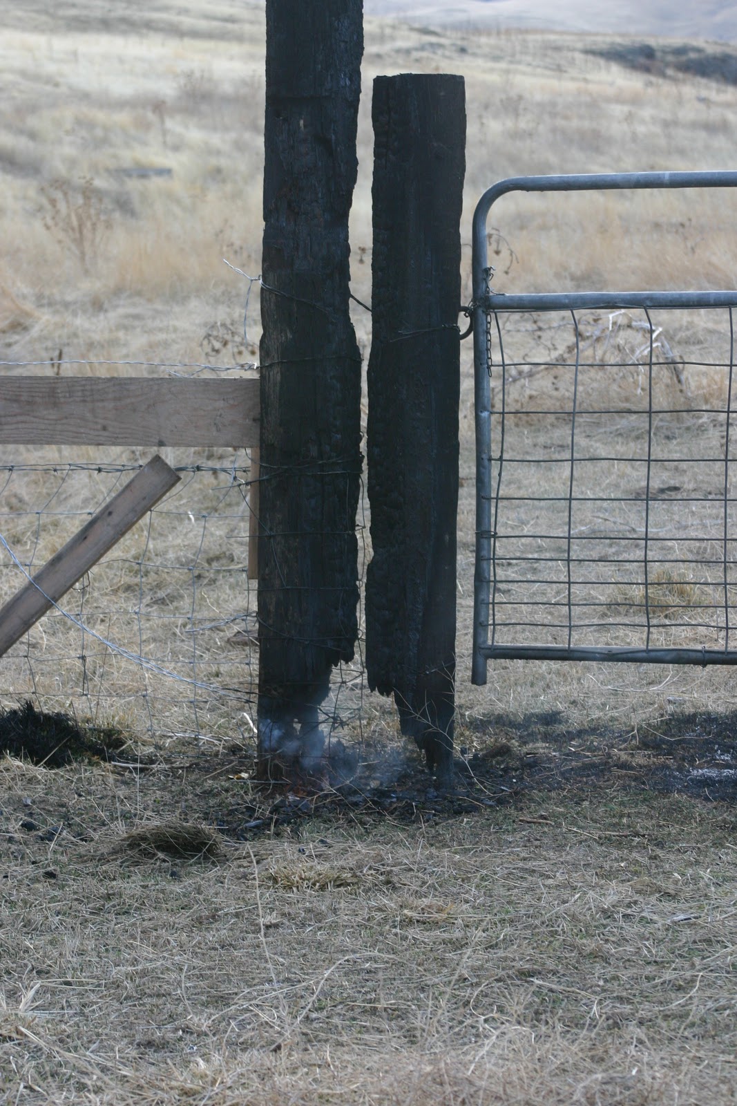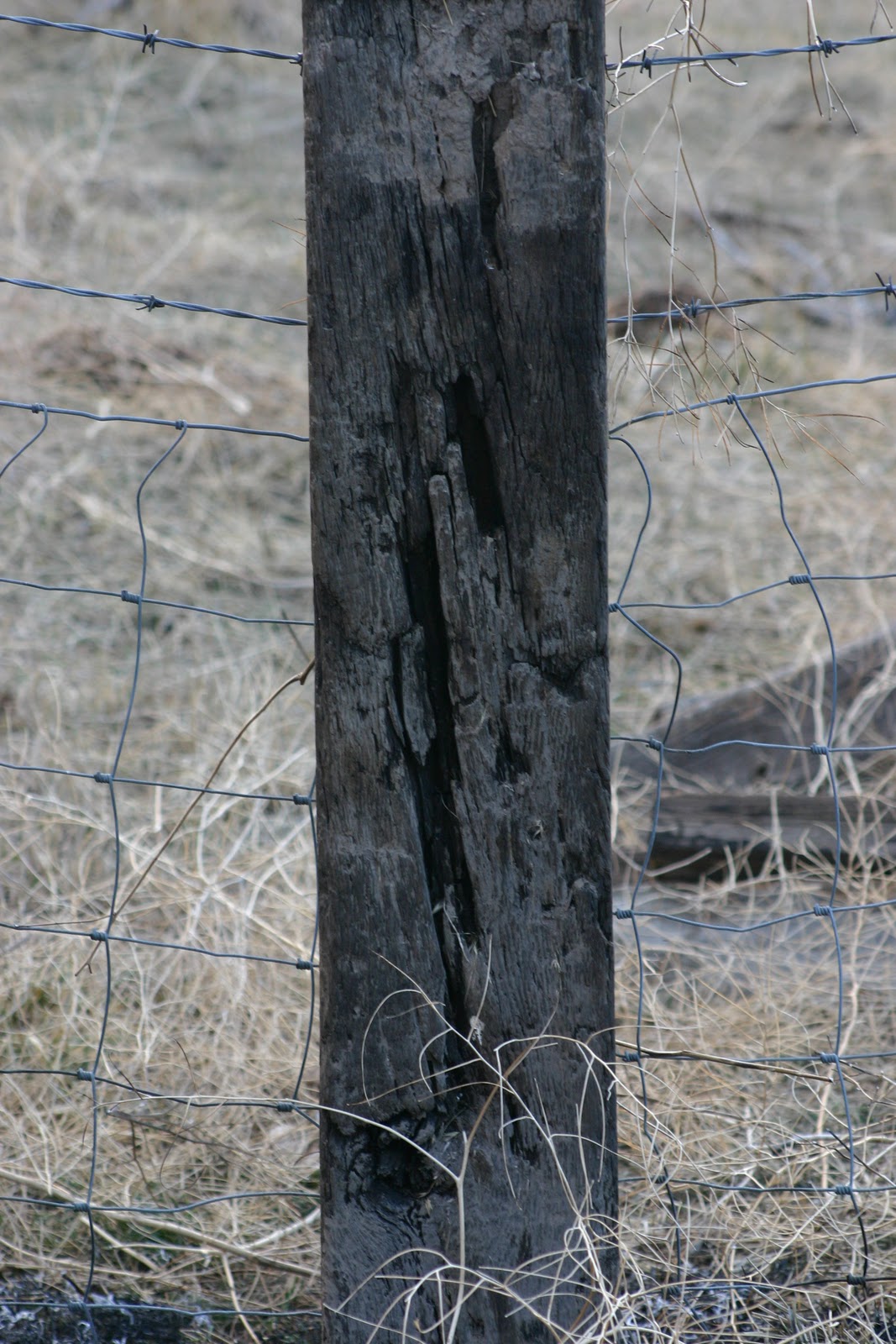 | Cracks and splits were the reason the fire got inside the posts so easily. |