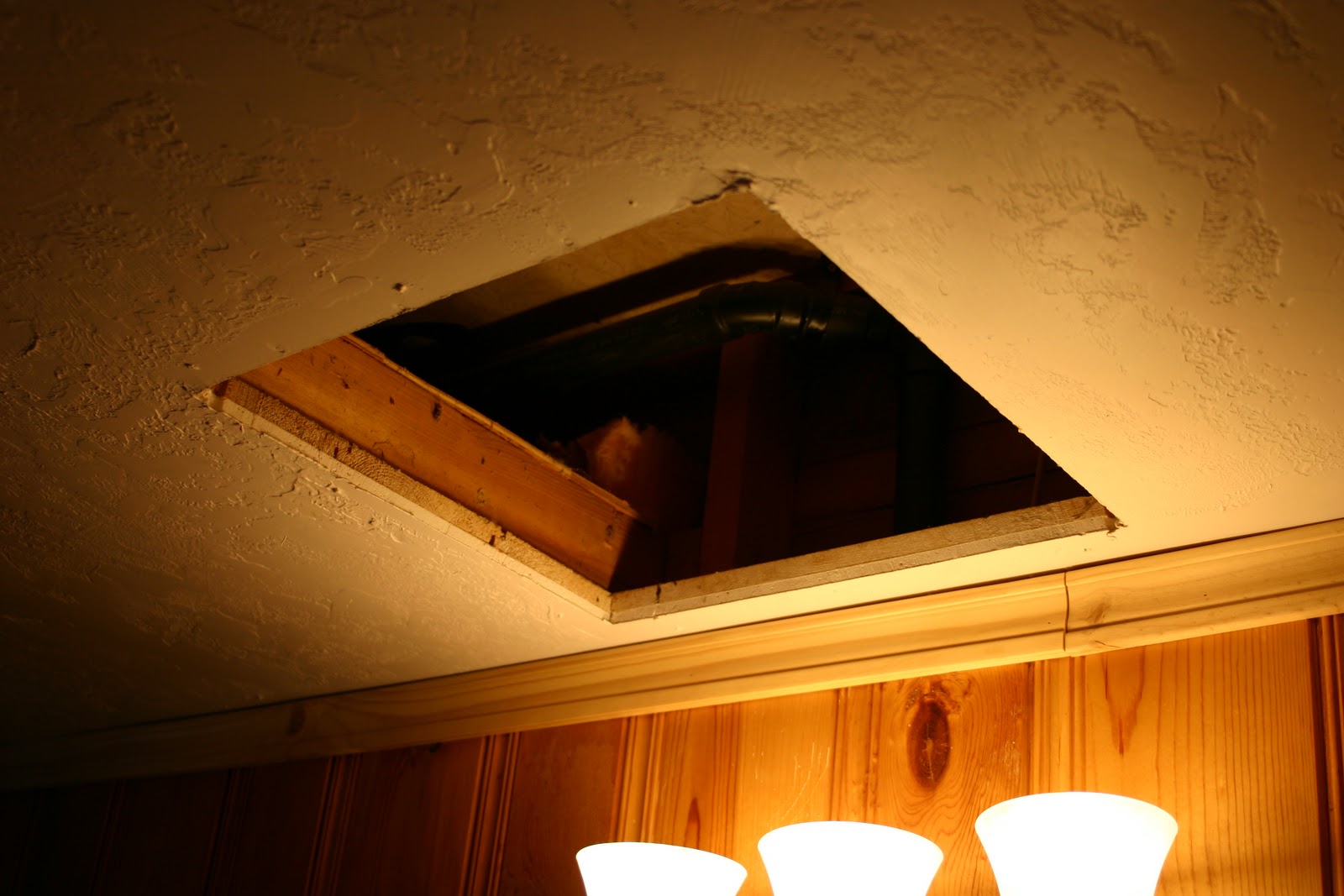 | Ceiling tile needing replaced. |