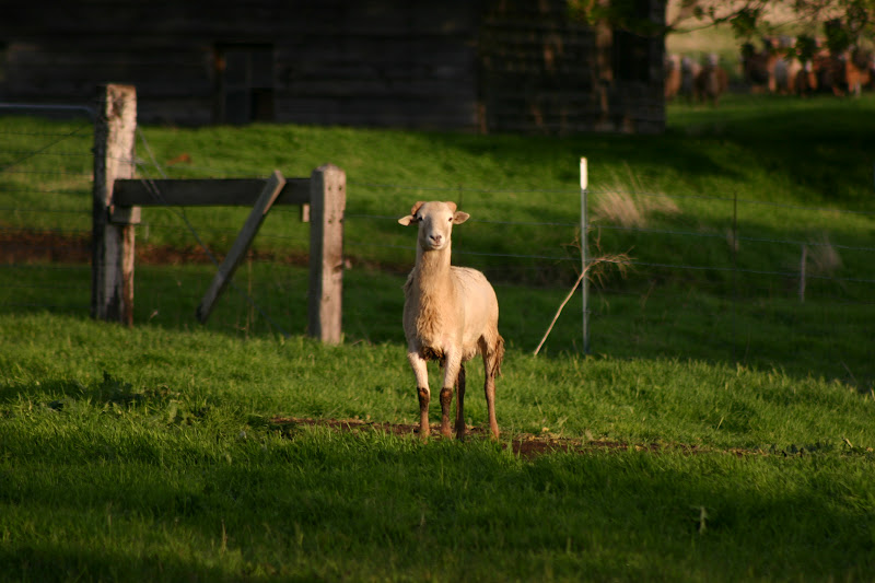 I had to give the new ram some probiotics before turning him loose. I managed to chase him into the loading chute (he is not near as tame as Lucky) and was trying to catch him. I caught a horned head just below the ribs on my right side when we dived at each other and he leaped into the air. Damn sheep. This is the number one reason we will not own any sheep that weigh over 150#. Once he got his probiotics we turned him loose and I went to chase the sheep back into the same area. Zeke ran around while I stood on the hillside and hollered. Zeke pushed the sheep to the wrong gate. So I had to go open the gate, while I was doing that Zeke decided to exert his dominance on the new ram. He ran over and jumped on the ram, harassing him until we called him off. He is a firm believer in getting the upper hand early now. The ram did not want to back down. I expect they will go a few rounds before Zeke establishes dominance.