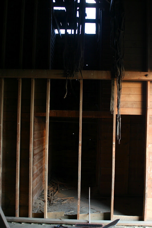 This is an old granary with the inside cut out, it is L-shaped. The horizontal board you see inside the room is going to be a support for the floor. I am going to make two rooms out of this so we have more storage area. Most likely, this will be an area for storing some left over lumber. The hay rooms have lumber in both of them. I just remembered that I will probably be picking up hay on Monday, not doing anything else. I had totally forgotten about it.
