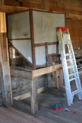 We spent the whole day cleaning up, it is not very sexy.  There is one more load to be thrown into the trailer.  Mr. President is going to do that tomorrow and finish cleaning up inside.  When he is done with that the roof piece that blew off the barn needs to be cut up with the sawzall so it can be hauled up to the hillside.  Mr. President is afraid of bees/hornets/yellow jackets.  It is official.  I wanted him to cut up the old grain elevator with the sawzall while I took a load up to the pile and dumped it off.  When I came back the sawzall was out but nothing had been cut.  There were about 10 hornets buzzing around and he didn’t want to get stung.  I cut the whole thing up without getting stung.  We loaded 1/2 of it but by the time we filled the trailer there were probably fifty hornets flying around.  I told Mr. President to pick up some spray and hose them first thing in the morning.  Even I didn’t want to move the wood with that many hornets flying around.