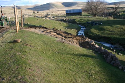 to have to go up on the hillside and scavenge rocks regardless. It is taking a LOT of rocks to build the wall. Surprisingly, it is also taking a lot of dirt. I have the compost pile and every year we are generating around 3000# of compostable straw and manure. As I start to relevel different areas I will take off some surface dirt and use it for the hillside. This will let me plant new grass seed in stages around the place.