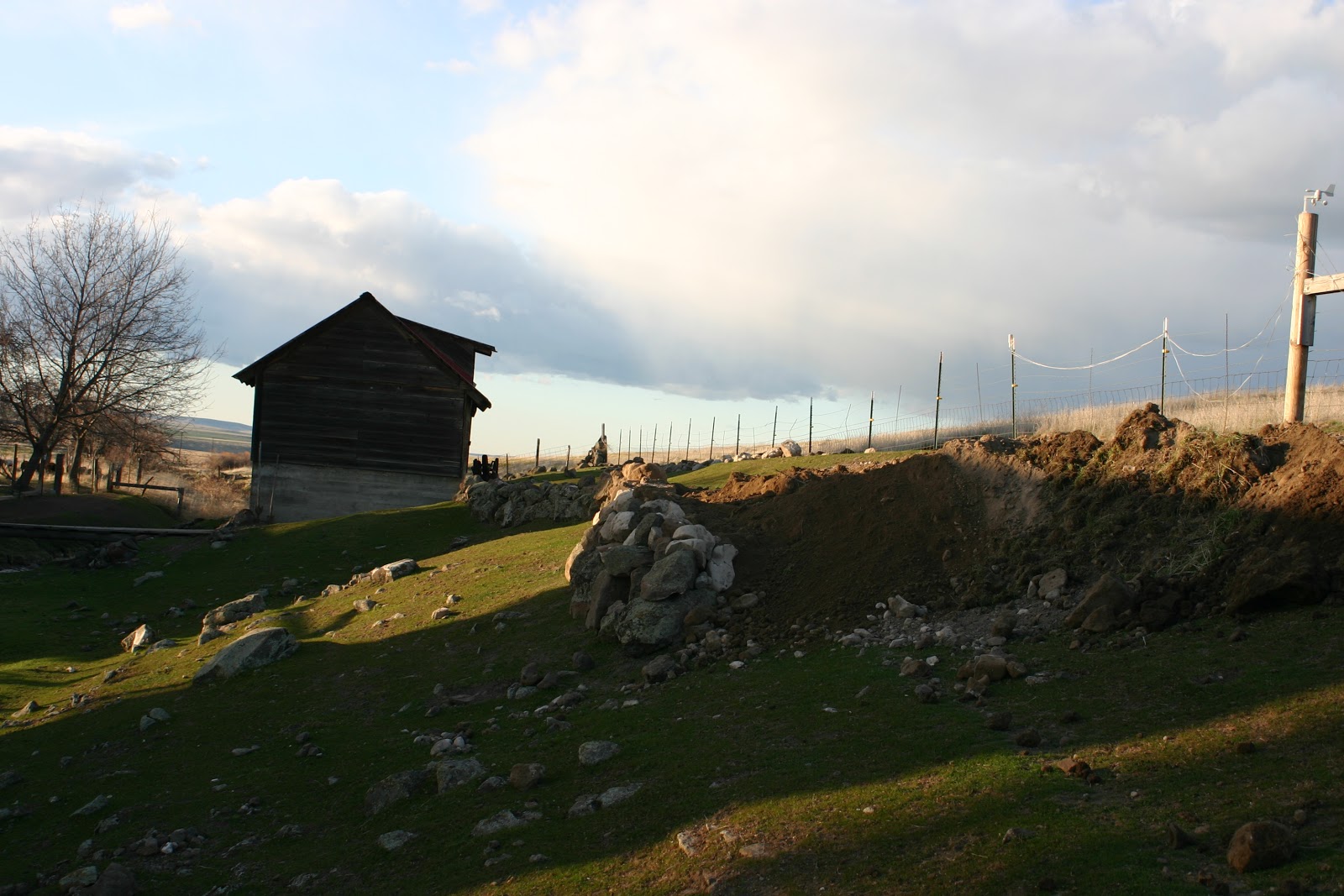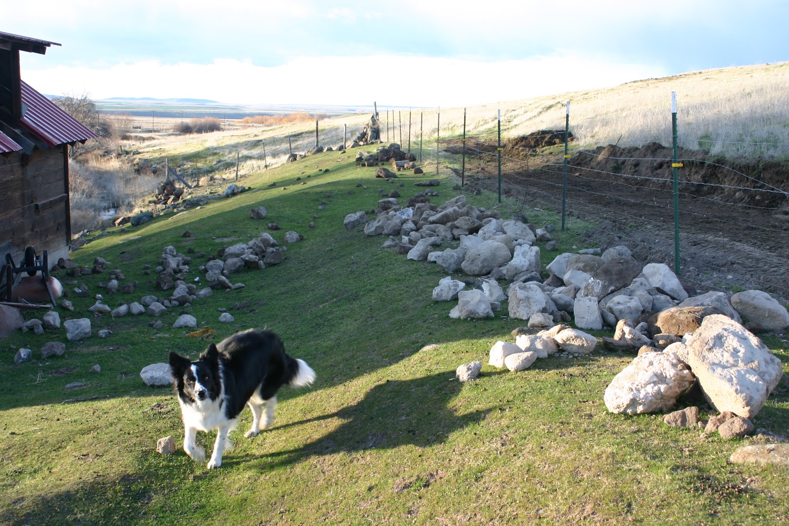 to have to go up on the hillside and scavenge rocks regardless. It is taking a LOT of rocks to build the wall. Surprisingly, it is also taking a lot of dirt. I have the compost pile and every year we are generating around 3000# of compostable straw and manure. As I start to relevel different areas I will take off some surface dirt and use it for the hillside. This will let me plant new grass seed in stages around the place.