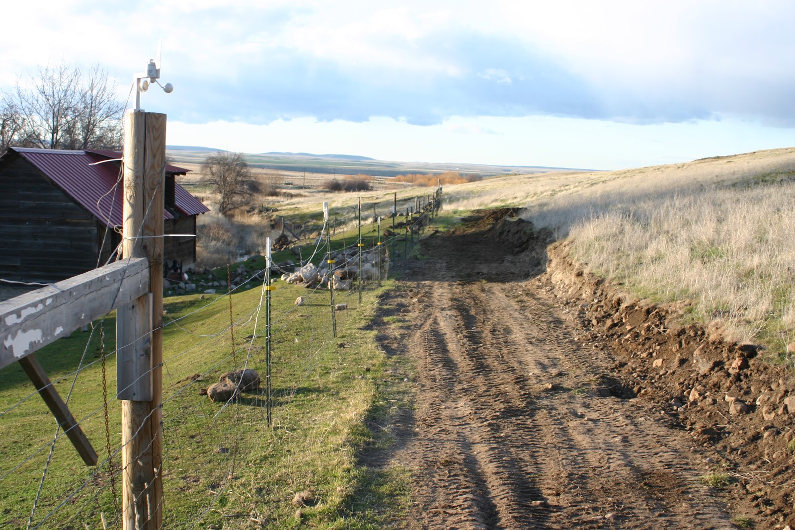 The tractor started! I thought I might have to charge the battery after winter but it fired right up. Zeke and I went up on the back hillside and worked on the road for five hours. I need him to keep guard while the upper gate is open. No, he does not just sit by the gate, he roams all over and keeps the sheep away. I worked on cutting into the hillside but almost every pass I had to stop, get off the tractor and throw rocks over the fence. The only good part about all the rocks is I need them for the rock wall. I am still going
