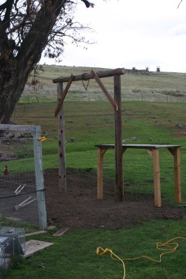I would like to install a little deer netting around the newly installed apparatus and plant some pasture grass seed. I need to protect the seed from the chickens then as it grows protect the new sprouts from the sheep. I can hopefully get that done this weekend.