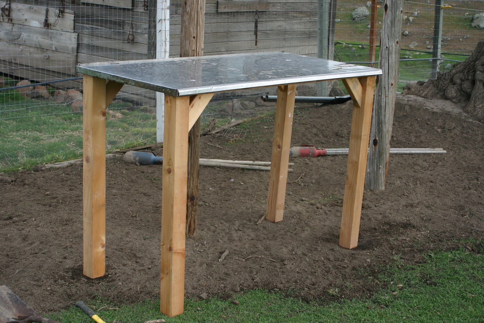 The cutting table is a stainless steel top from a restaurant remodel that Lee is doing and he brought it out for me. I happened to have some cedar left over from the new foot bridge so we used cedar legs and supports to make the new feet for the table. I still have to install three braces about 18 inches off the ground but we used up all three drill batteries and needed to wait for a recharge. So after a snack we opted to go up to the boneyard and shoot guns instead.
