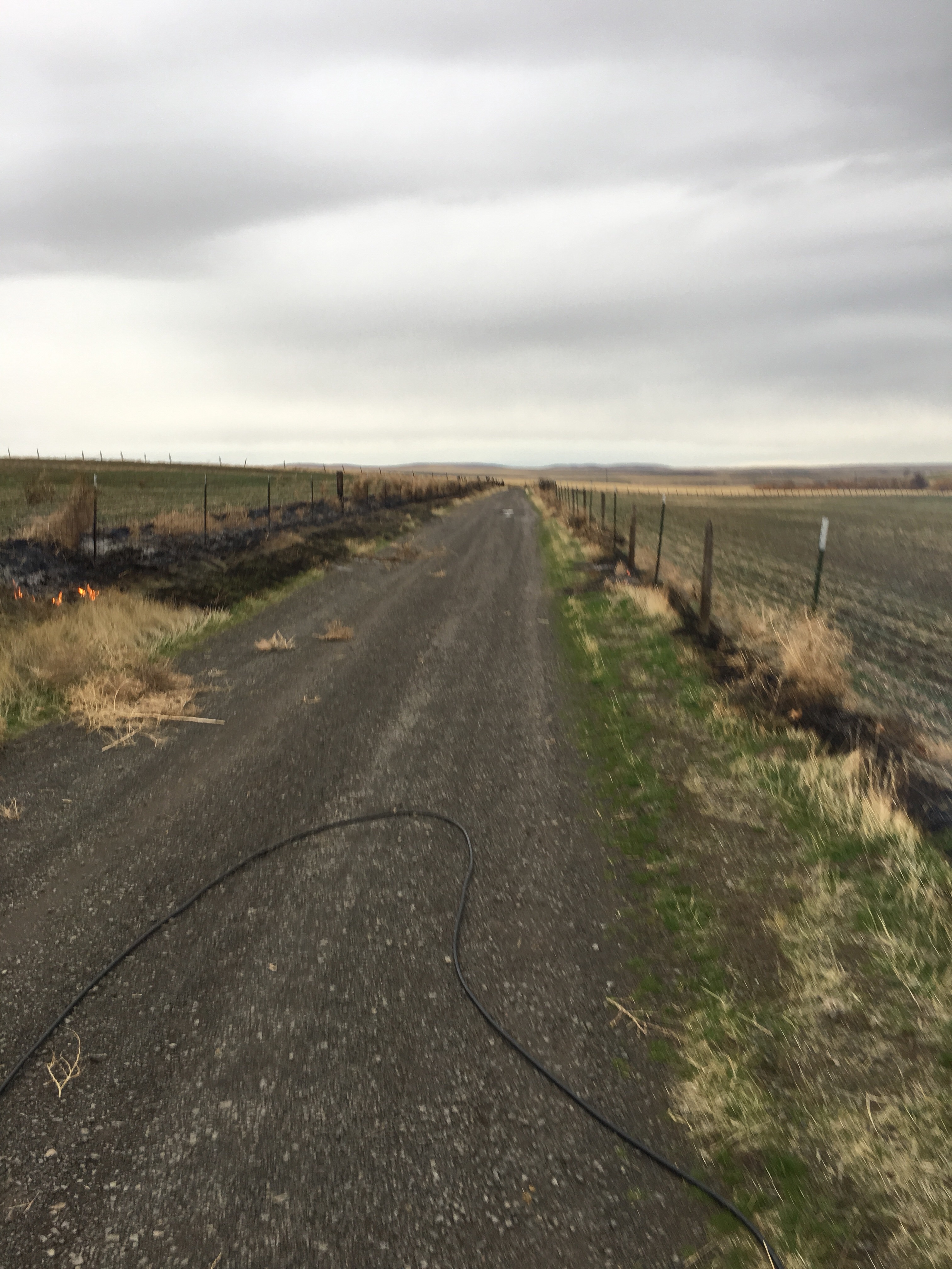 I had put a pitchfork in the back of the pickup but to pitchfork it all away from all the fence would take me a couple of weeks. The tumbleweeds are bad this year. So I opted for expediency and just lit the weeds off while they were in the fence. This has caused me some heart ache in the past with burnt up fence posts. It’s always the old frayed railroad ties that catch on fire. They always catch on fire in the middle of the post and it is near impossible to put them out. I was determined to not let this happen this year so I tried to burn around the posts and then tried burning up to the posts in an attempt to keep the heat down near the posts. Several posts caught on fire but then went out in the wind.