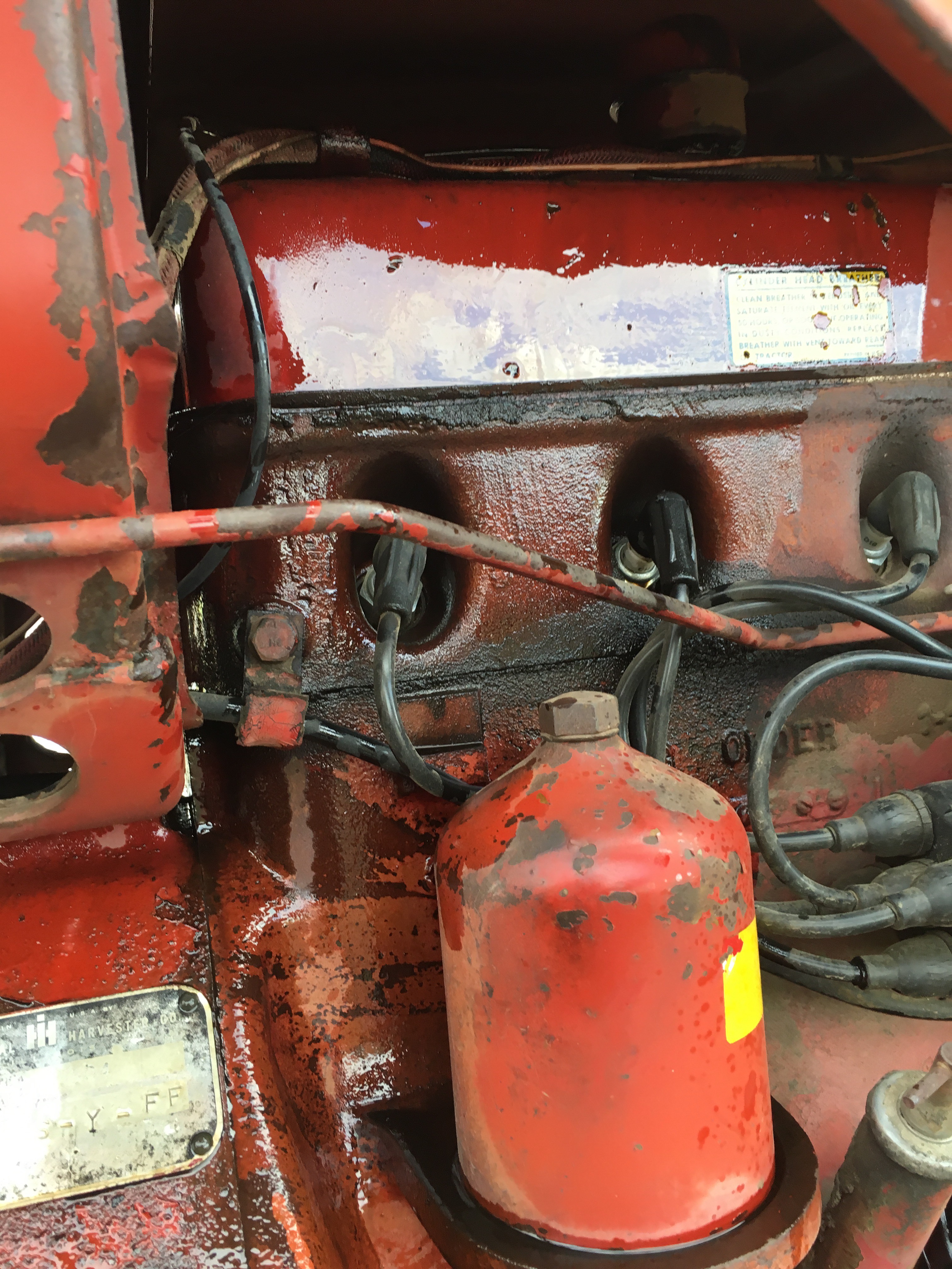 The part did not go in as easy as it came out. I had to cuss and beat on it and loosen up some more stuff to get it to fit inside the metal ring. I tried to start the tractor. Nope, I forgot to put the negative battery cable on the terminal. I tried a second time and could get no spark the engine would not take off. I investigated my newly finished work and realized I had put the coil nuts on loosely and never tightened them with a wrench. So I did that and after much effort and playing with the choke I got it to run!! So I started the warm up game and kept increasing the rpm slowly. I noticed a few water drops coming out of the exhaust pipe on top of the tractor. Its cold and we just had a severe rain, no biggie. I get the rpms up to pto speed, 18K, and all of a sudden I start seeing this spurting in my peripheral vision. I look to my left and oil and fluid is spurting out the engine. I quickly shut the tractor down. I blew a gasket. I am no mechanic but I believe that when you get fluid and oil its usually a head gasket which means tearing down the engine. This sucks. So we may be selling a parts tractor soon. We have yet to decide what to do but I don’t have the time to tear apart an engine. We are going to start doing our own hay in a year and we will be using a small hay baler that only makes 50# bales so a large tractor is really unnecessary. Unfortunately, I wanted the reach the old tractor provided to do some barn window work. Now I will just have to plan better.