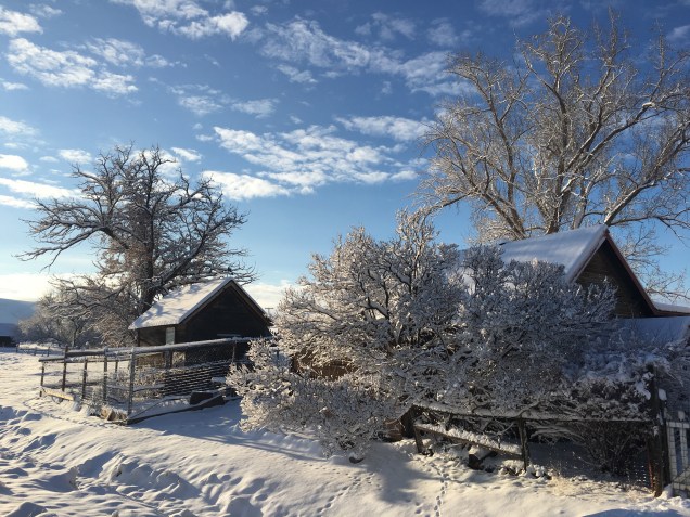 Next was driving the tractor up to the boneyard to drop off the ram carcass. I had to use speed, four wheel drive and positrack, to get up the back hill. We have a good six inches of snow on the ground. I was able to get up the hill after a couple of tries. On the way down the dogs and I stopped to let the mommas out to water and to lock Mika into the old milking area. It is now covered in straw and she will be spending the days and nights in there to keep her hoof dry while it heals. She does not like this so I will let her out this evening to go drink while I do the sheep chores and then lure her back with food and grain. The horses and sheep are very compliant when you offer them grain.