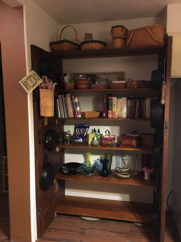 We thinned out the shelves by almost 50% on the cookbooks and the flower vases. Hard to believe Annmarie got rid of two full paper grocery bags of cookbooks and I got rid of 9 flower vases!