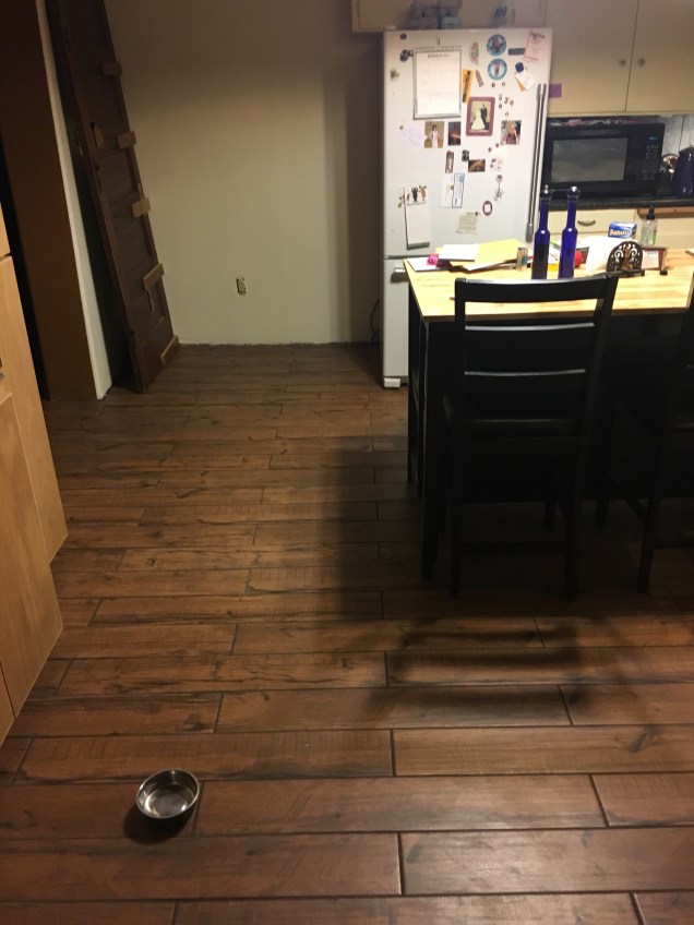 I spent a couple of hours taping off the kitchen and then cutting in the corners with paint. I got that all done before Annmarie came back. Before I can roll on paint I will have to plastic off the entire kitchen.