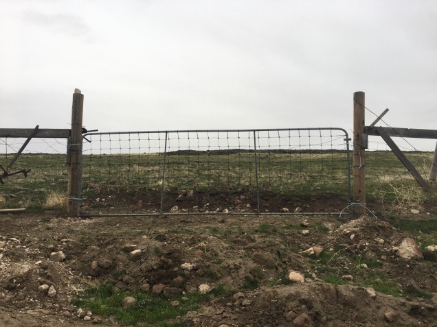 To make sure we had two fences between the separate herds I had to put the gate back up. I used some bailing twine, that stuff is good for everything. If you look real close you can see my handiwork in the picture below!