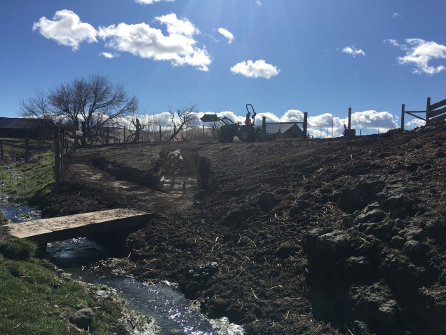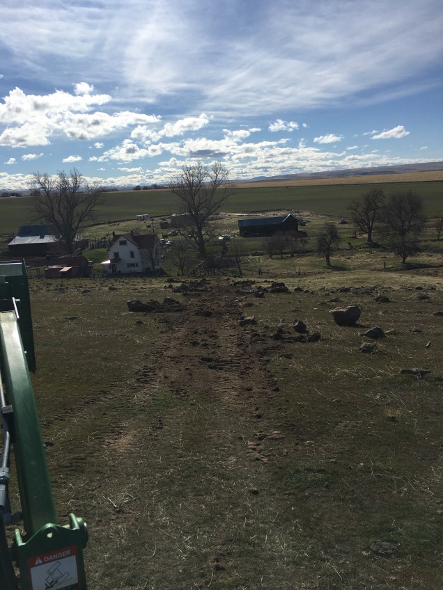 I spent almost seven hours dragging the old road to clear it of rocks and create a wide spot for a gate. I am thinking about installing a 12 foot gate, another 4 foot diameter rock crib and a 6 foot human gate near the house. I will put another 12 foot gate on top of the hill. I also drug a path down the hillside and tried to clear out all the rocks in the way. I managed to get all the rocks cleaned out of a small four feet strip.