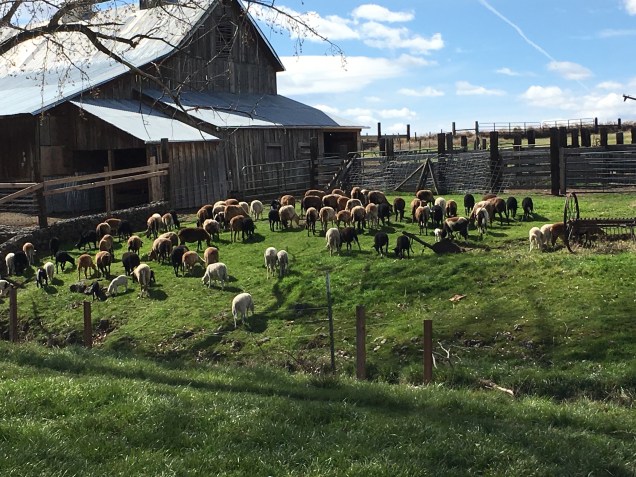 This strategy of mixing her in with the herd has worked so far. The baby is still alive and she is giving it a workout. We are now using the sheep to mow the yard and front hillside. This serves three purposes:1. I don’t have to mow it.