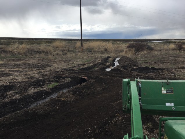 The culvert is for the upper spring, this way we can drive over to the back half without having to go all the way around. I have three more culverts left and need to install two more in the lower bottoms so I can easily get the tractor in and out of those fields even when it is fairly wet. Driving through the irrigation ditch when all the surrounding dirt is muddy is a good way to get the tractor stuck in the ditch.