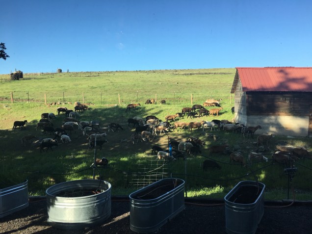 I just love looking out our back kitchen window or our living room and being able to watch the sheep wander and play. It is very relaxing. At 0300, when the bedroom window is letting in all their hollering for momma I am not near as magnanimous.