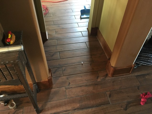 While Annmarie and I go to work every day, Mr Experience and Muscles have been working on floor and window trim. It is so painfully slow, it just makes my pocket book ache! Every time I think about it I remind myself that it took me 2 days just to do 3 windows and nothing else. It helps put things into perspective. I am going to have to make another bank run.