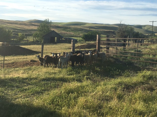 When we got home that late evening he saw all the weathers out in the orchard and started to holler at them. We were wondering how we were going to get him out of the pickup as we had a step stool to get him in. As soon as I opened the stock rack gate he leaped right out and ran over to his peeps. It took him about two days to integrate into the herd. He was walking around the outside of the group until they finally accepted him.