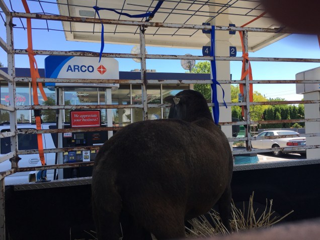 We drove to Canby Oregon to pick up our pure bred Katahdin ram. I hate Portland traffic, there was slow down to 15 MPH traffic on the freeway on a Saturday! I cannot imagine what it would be like on a weekday with everyone trying to get to work. I managed to rig a couple of cattle panels over the top of the racks. The tiedowns look a little hickish but they worked great and allow me to just slide the racks off and onto the ground. It is doable by myself as I just tip the rack up on its gate end and drive under it then just lift and slide it into the pickup. Eventually I may need to make a shelf that I can just slide it off onto without having to lift it up and down. I have a few years to figure that out. I also need to get it over to get sandblasted and powder coated but in all honesty that is just a money thing. I am working on saving for hay and some summer labor to dig out the barn and chicken coop. The tie downs also stopped all the rattling from the panels. The ride was very quiet. As an added benefit all the Portland traffic avoided me like the plague. I was driving a big truck, lots of dents in said truck, peeling paint and big rusted stock racks with tie downs holding everything together. I had no trouble passing.