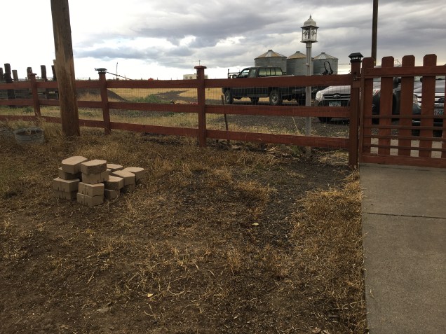 I also picked up a few blocks to put next to our gate. When we step in we step next to the concrete. I poured a bunch of gravel there to keep the mud away but over time the gravel is sloughing off down the hill. I need to put in a short wall to contain the gravel and allow us to have a clean stepping spot.
