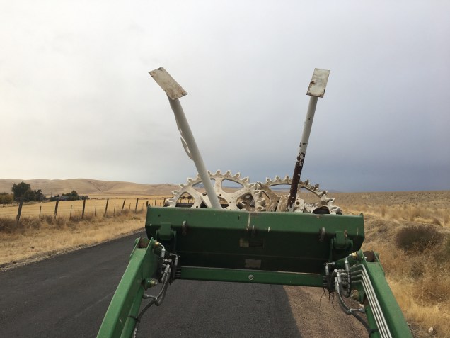 When we first moved here a neighbor made custom mailboxes for us out of old gears. The paint has started to flake off and show rust so we had decided that it was time to take them over to Hermiston and get them bead blasted and powder coated so they would last for another 20-30 years. Unfortunately, we still need our mail so I used a bunch of pallets to create a temporary holder. I plan on dropping these off in Hermiston next week.