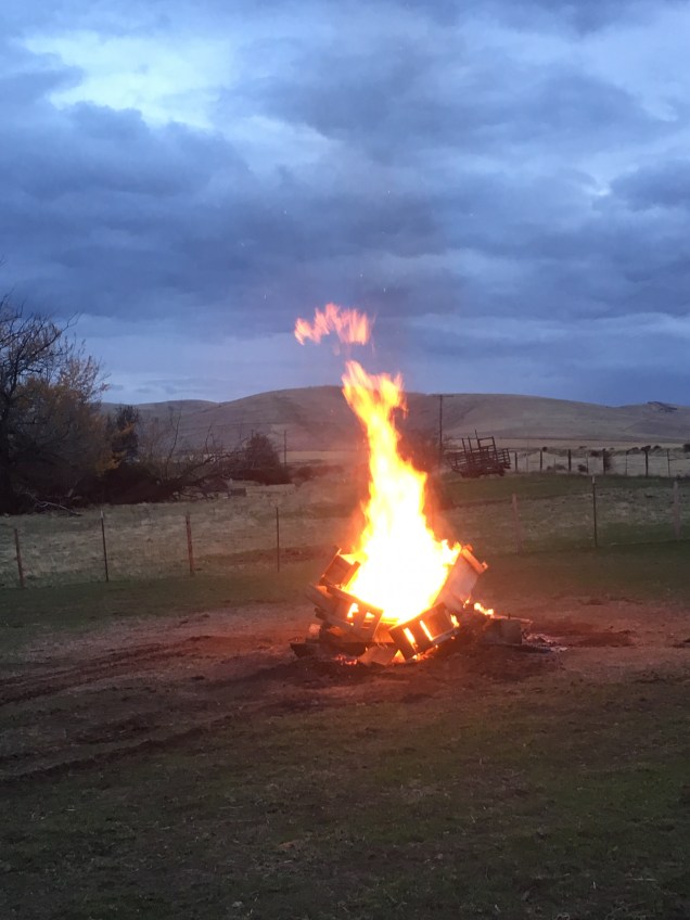 I had started a burn pile in the barn lot when we cleaned up the corral area. So I lit it on fire Saturday and started dragging all the burnable materials onto it. I had three other piles of scrap wood that the animals had made into not piles that needed to be picked up. If a flame could clean it up I tossed it on. I went through the entire barn lot and tossed all the scrap wood onto the fire. I also picked up all the rocks in the barn lot and tossed them next to the lamb shed to fill in the runoff channel that the water was creating from running off the metal roof. I even managed to drag the entire barn lot clean of horse poop and straw from the barn.