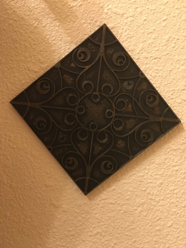 I had to zoom into get a close up so you can actually see the design. Annmarie prints them on our 3D printer then we spray them with black paint, then she appliqués some brown paint onto them with a sponge and then we hit them with clear coat. They turned out very nice.