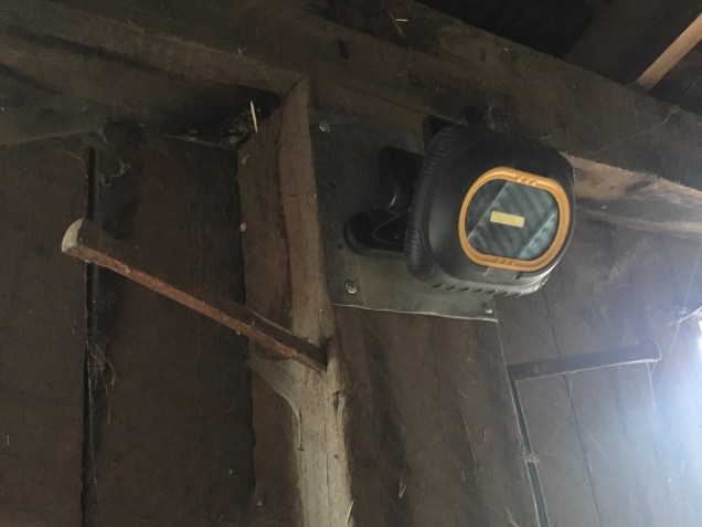 You can see two of them on this wall at both ends of the picture. I installed five of these on opposite walls. The one end has the metal grain bin to mount on and the other side has a 2×6 that the light can be clamped onto. We can now move the light all around the inside of the barn. It is so cool we may get a second one and I can put off installing solar panels and a 12V electric system for another 3-5 years. Its rechargeable so we can just bring it inside the house and recharge it. We have had it a week and it is just as bright as ever. We typically only use it 30-60 minutes a day.