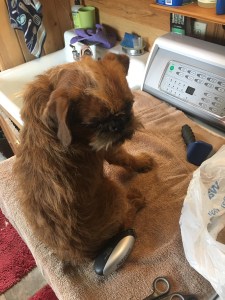 After the morning chores I went inside and groomed Gizmo. He does not appreciate being plucked. I was able to get the Mohawk hair do back to its dazzling do. He no longer smells like mud and sheep.