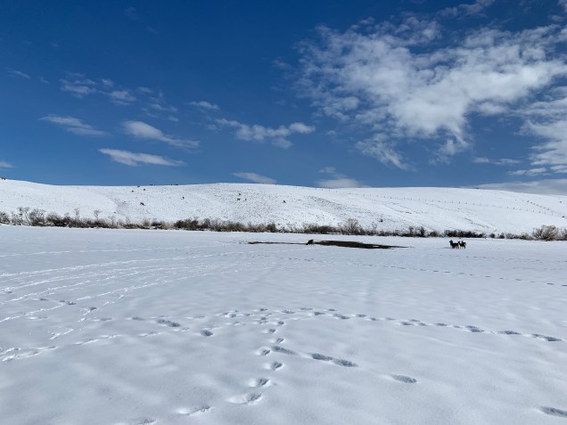 We are getting so much moisture that the bottoms are starting to create wet spots, this one below is in the 7 acre barley patch that we are going to turn into alfalfa this spring. This wet spot is going to delay planting. The deer are hanging out in the bottoms away from the elk.