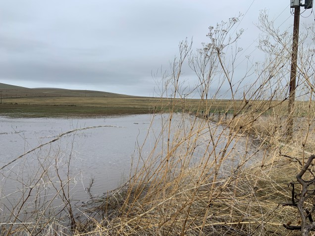 I did notice that the back creek was very high. After feeding the sheep I was driving the tractor toward the cows when I noticed the orchard flooding.
