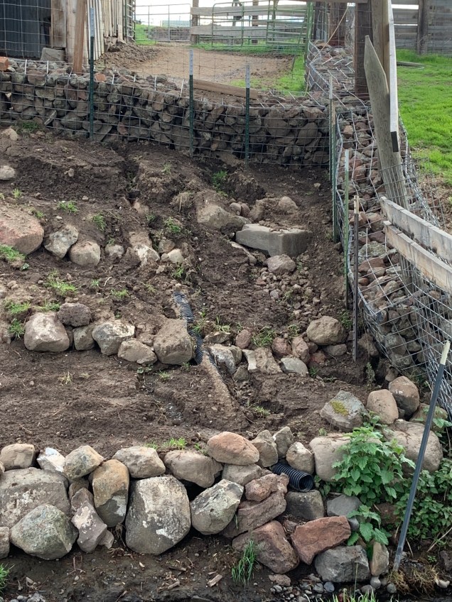 I had Tex come out on Friday and add two more strands of wire to that fence. He also moved the railroad tie so there is no gap at the gate. We still need to add in a few wooden stays to the fence to stiffen it up so the sheep cannot push their way through.