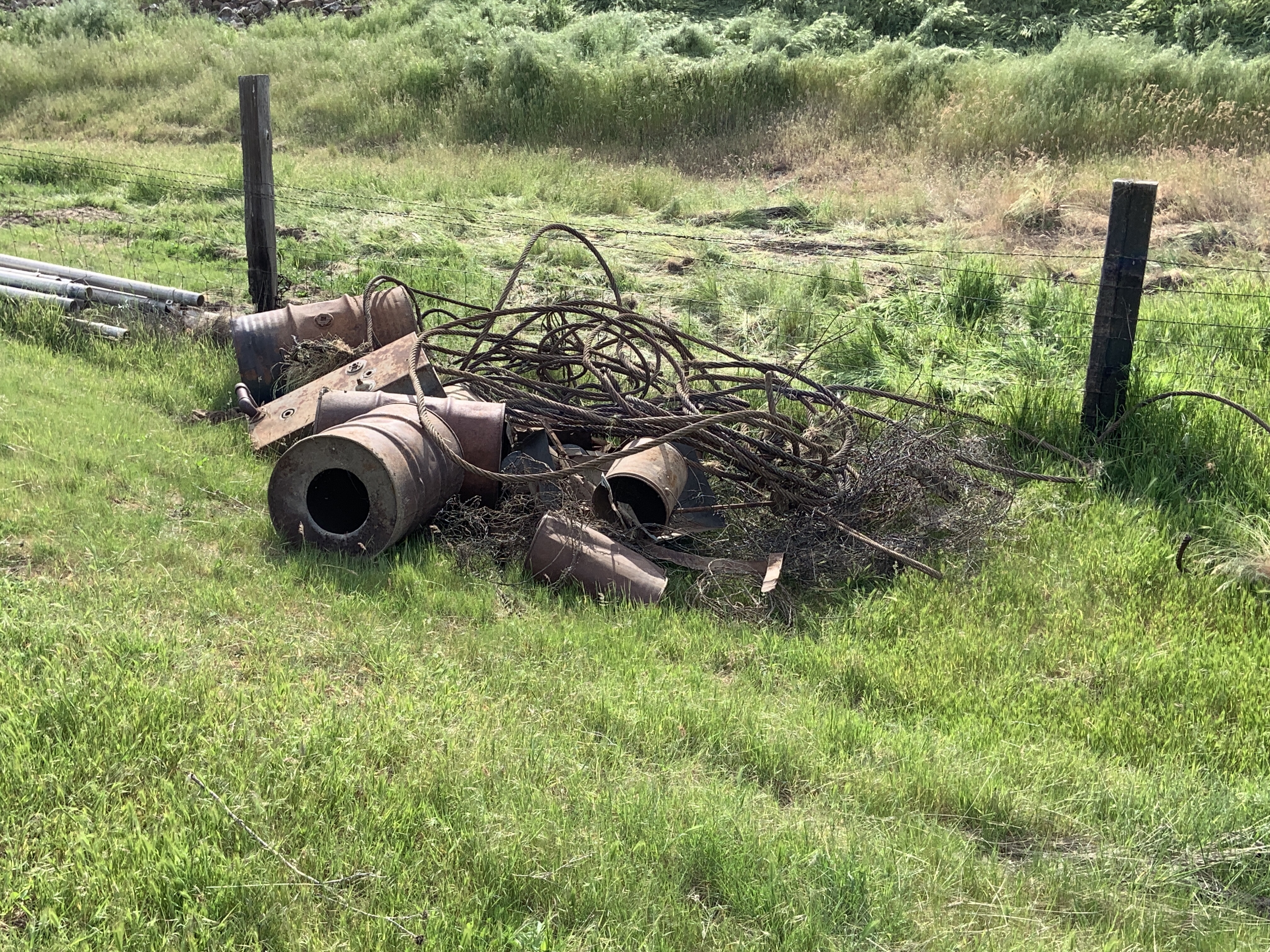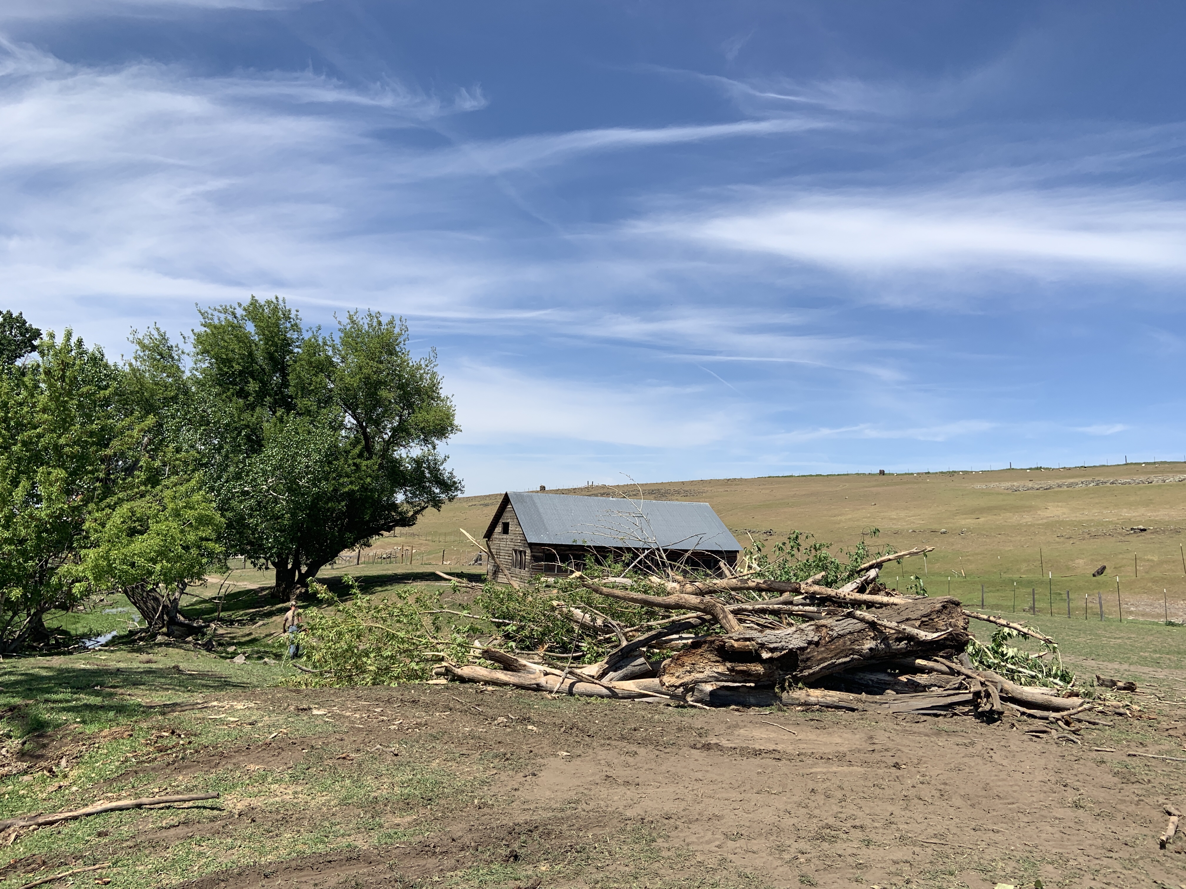 that used to be bolted to a post that had old ceramic insulators installed at the top. The barn and old lamb shed used to have knob and tube power. I pulled the old copper wire out of the spring a few years ago. I had taken down the post as it had rotted away and saved this 4×4. I was going to mount a bat house to it at one point but while cleaning out the machine shed I found an old decorative windmill. I washed it all down with some water and applied some fresh grease. I had the metal sleeve also so I was able to drill a hole in the end of the wood, which turned out to be a solid piece of cedar!!! This would explain why it did so well laying on the ground for the last four years. I greased up the metal sleeve and after installing the windmill it just sat there and didn’t move. A couple of hours later the wind picked up enough to break everything loose and the windmill started to spin and it pivoted on its wood post. I was able to use some of the old lag bolts I picked up all over the farm. I found a railroad tie that was level and had not been pulled over during fence construction. I love it. Once Annmarie spotted it moving around she was surprised at how well it fit. Another fine example of a repurposed item. I finished it just before a rainstorm hit.