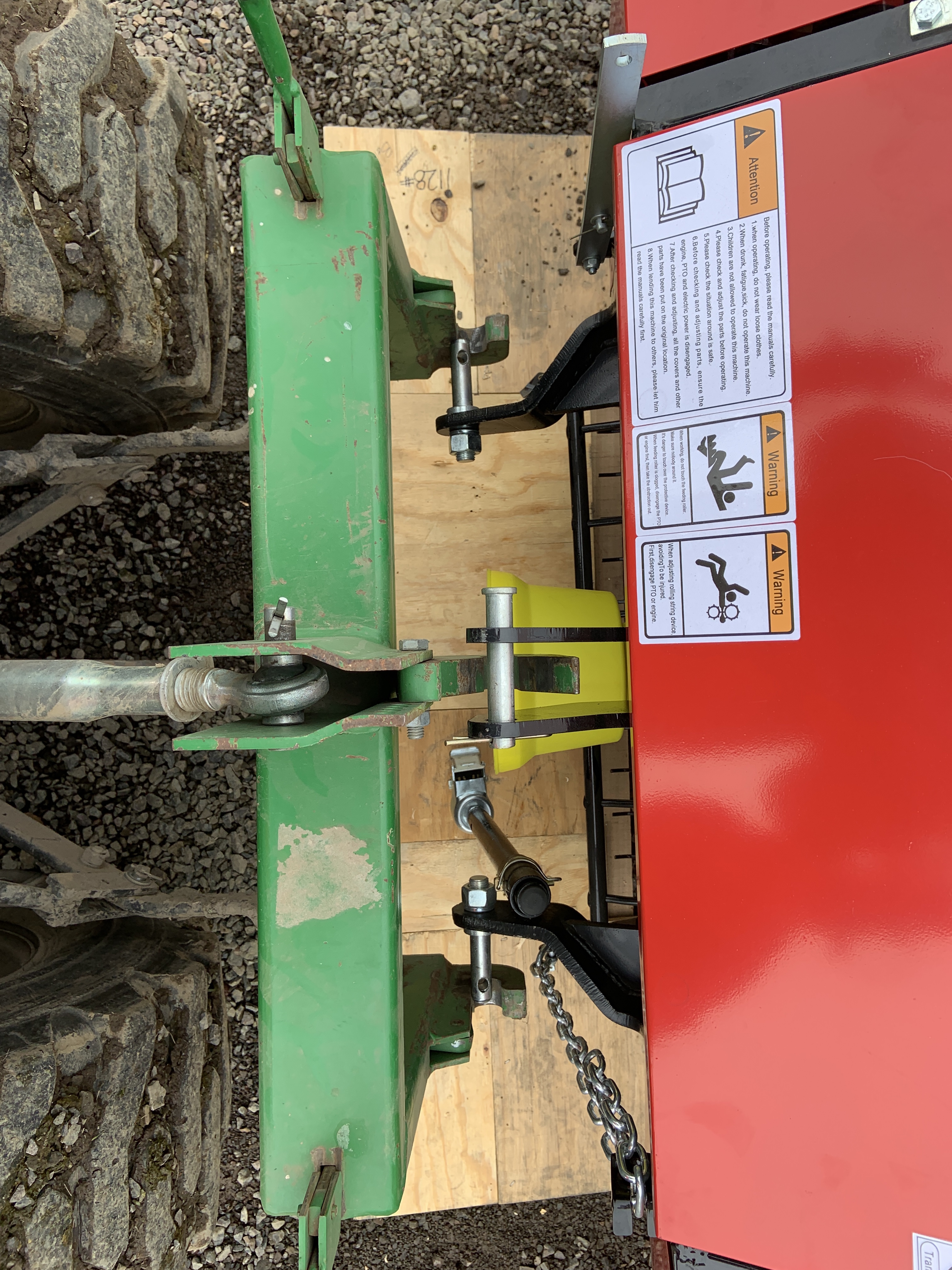 I had visions of just backing up to the equipment with our quick hitch system and hooking up to everything and just putting it in the machine shed. This did not happen, as not a single piece was capable of using the quick connect. I kept trying, finally Tex told me I had to take the quick connect off the tractor and hook directly to the three point hitch.